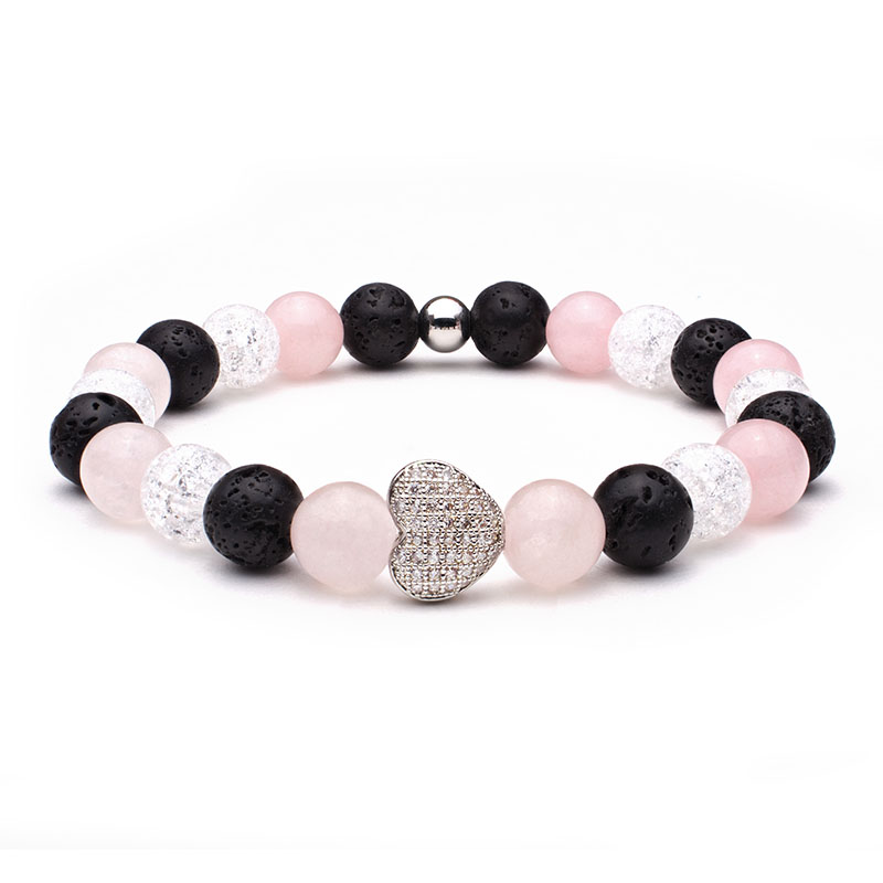 Minerálny náramok MAGICKÉ SRDCE z ruženínu, praskaného krištáľu a lávových kameňov MN1137