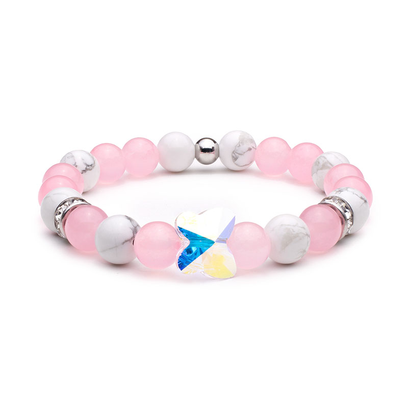 Minerálny náramok MOTÝĽ Swarovski z howlitu a jadeitu MN1136